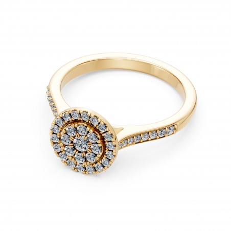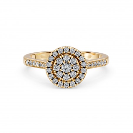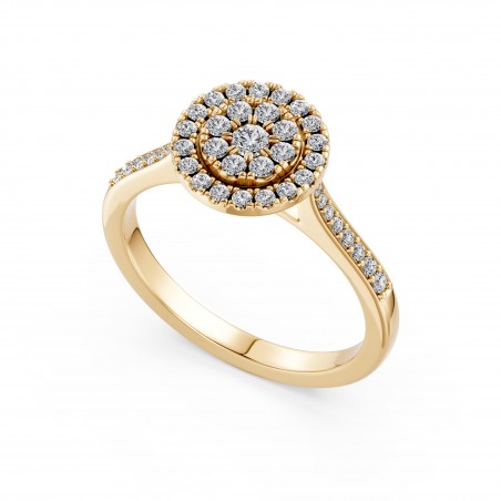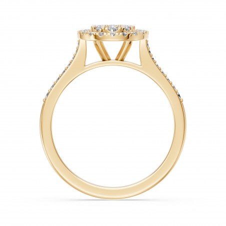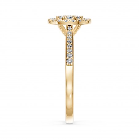 Son double halo met en lumière la pierre centrale avec une intensité exceptionnelle, créant un éclat profond et enveloppant, comme les reflets du soleil sur l’eau.