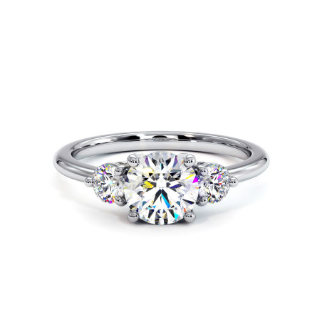La Bague de fiançailles Madeleine Diamant Rond est composée d'un diamant central et de deux diamants de forme ronde qui viennent le rehausser.